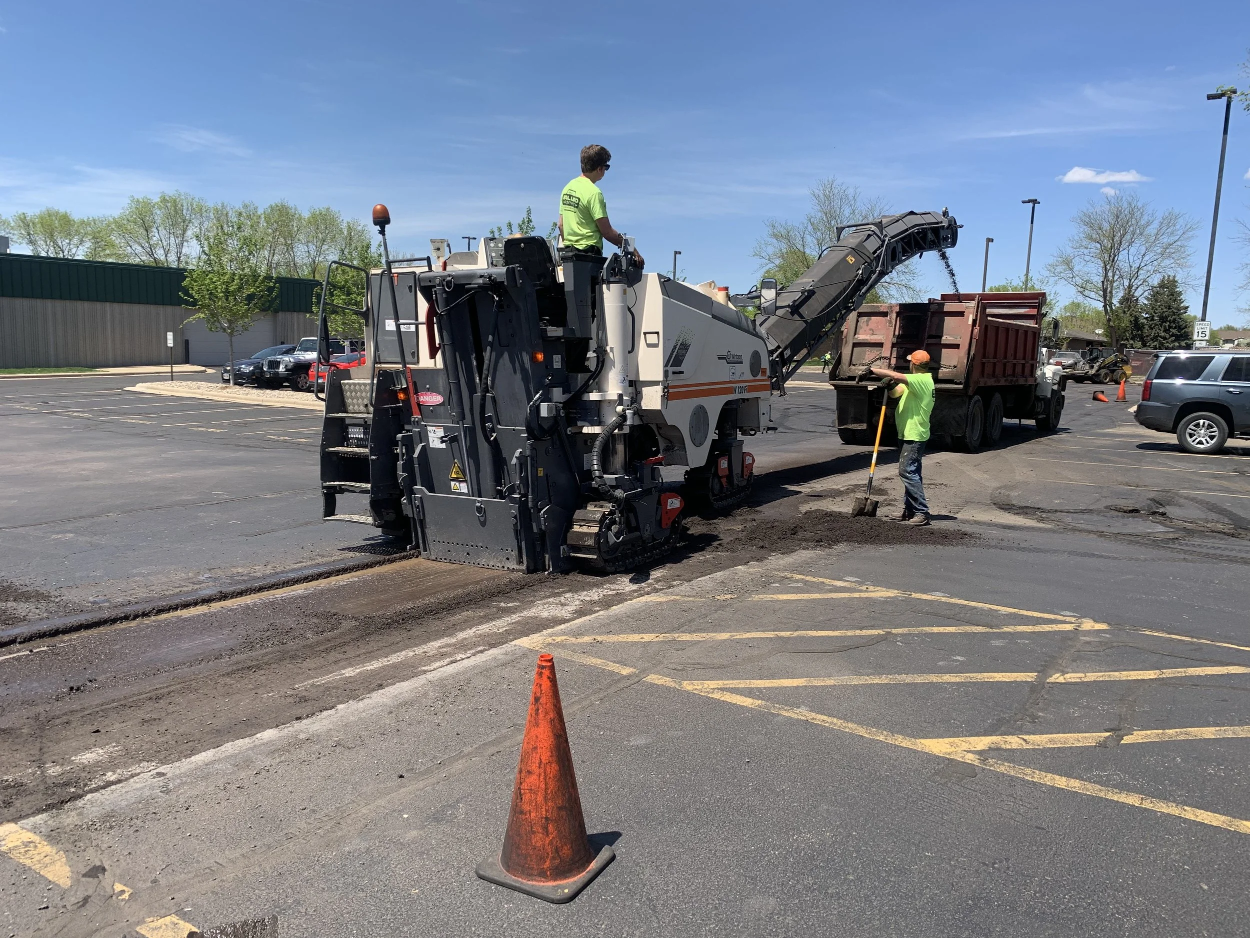 Many parking lots suffer from excessive overlays, causing the asphalt to rise above the concrete gutters, which can lead to drainage issues and create tripping hazards. Our asphalt cold planer effectively grinds down the asphalt to below finished grade, creating the necessary space for an overlay that aligns perfectly with your existing gutters. This not only ensures optimal drainage but also creates a smooth transition between surfaces, enhancing safety and functionality.